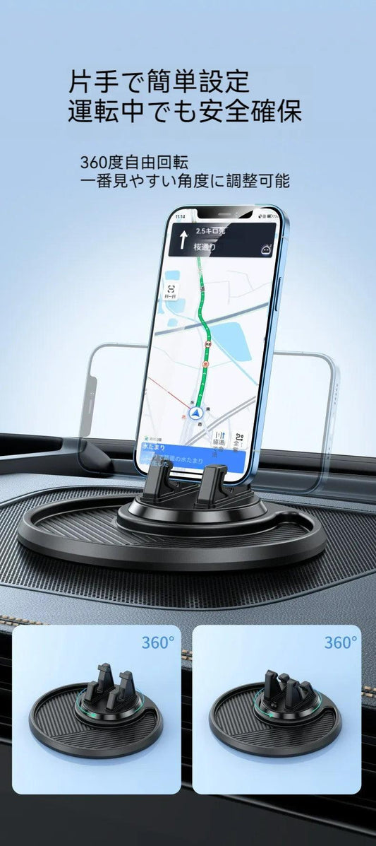 360度回転可能なユニバーサルカーフォンホルダー、折りたたみ式滑り止めダッシュボードマウント、簡単な取り付け、防水車両スマートフォンスタンド、安全運転アクセサリー
