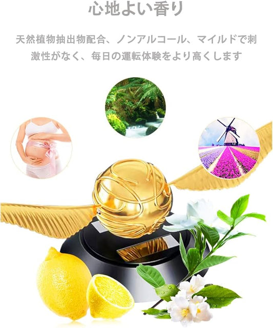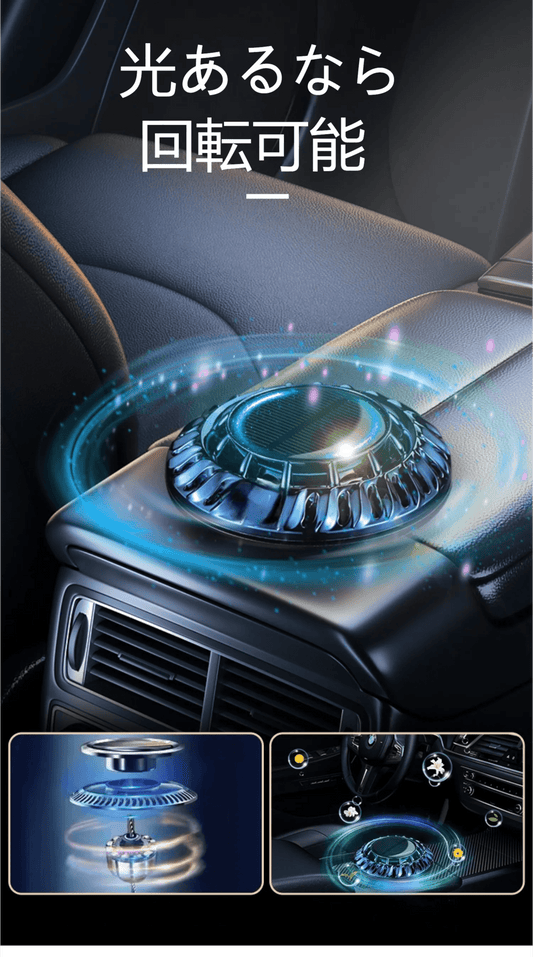 車用芳香剤 ソーラー回転式 静音 個形香りリング1枚付き 置き型芳香剤