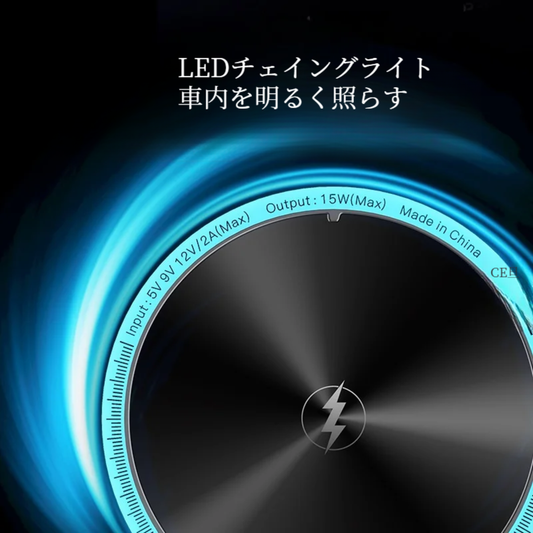 車載ワイヤレス充電ホルダー|15W急速充電・マグネット・エアコン吹き出し口用・ランプ付き・IPhone14/13/12/11/X/XSシリーズ対応