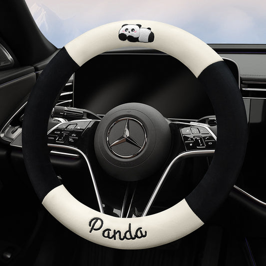 ハンドルカバー|冬用・ショートファー・パンダ・かわいい・カートゥーン・保温・滑り止め・自動車用品・保護カバー