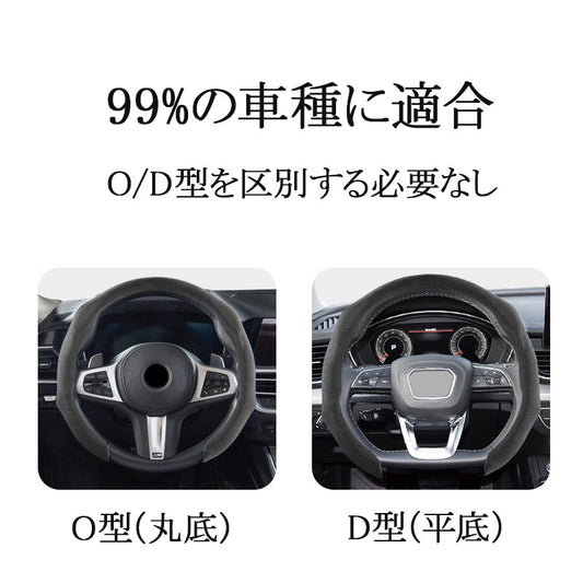 車用スエード/ナッパレザー ステアリングカバー 吸汗・滑り止め 超薄型 四季通用 スポーツタイプ