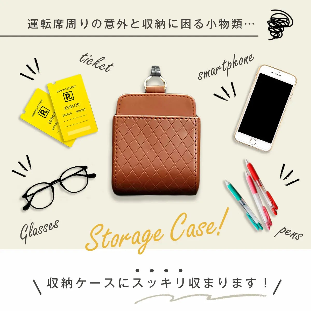 お洒落な車用収納ケース 2個入り |運転席周りの収納に困る小物類をスッキリ収納できる!