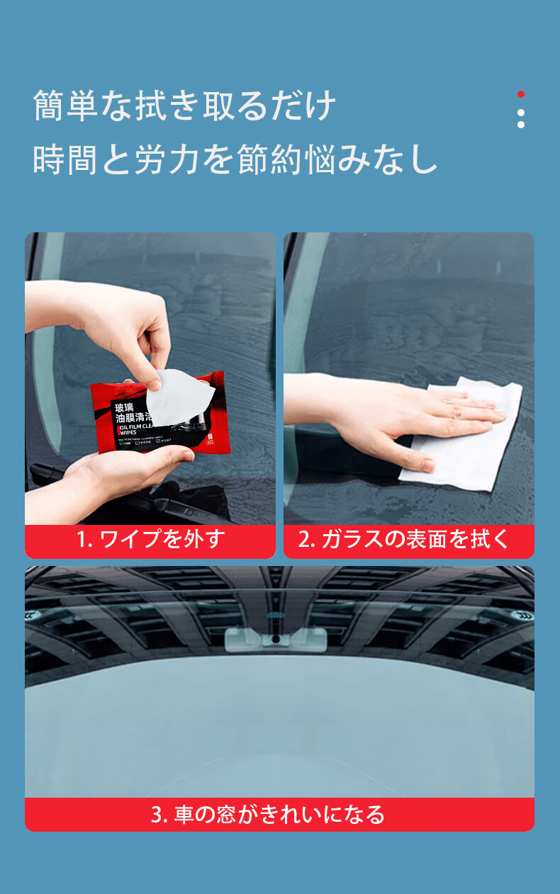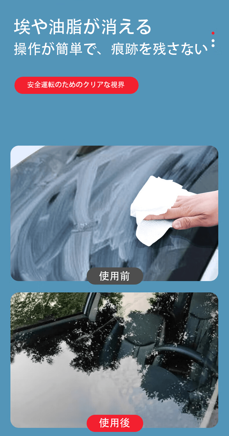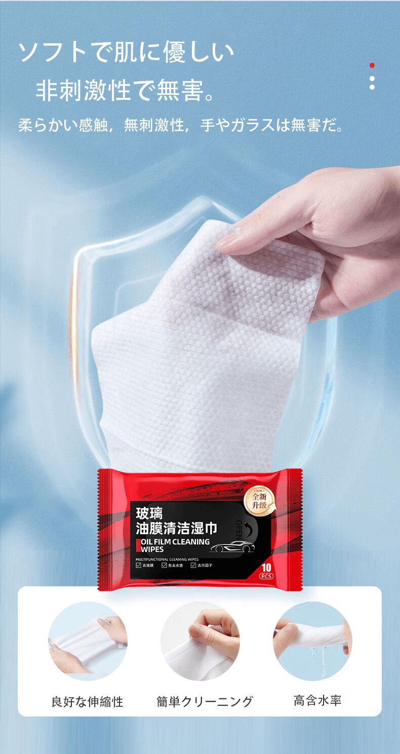 急送出荷(4パックセット)自動車ガラス油膜 除去ワイプ カーウィンドークリーナー 強力汚れ落とし